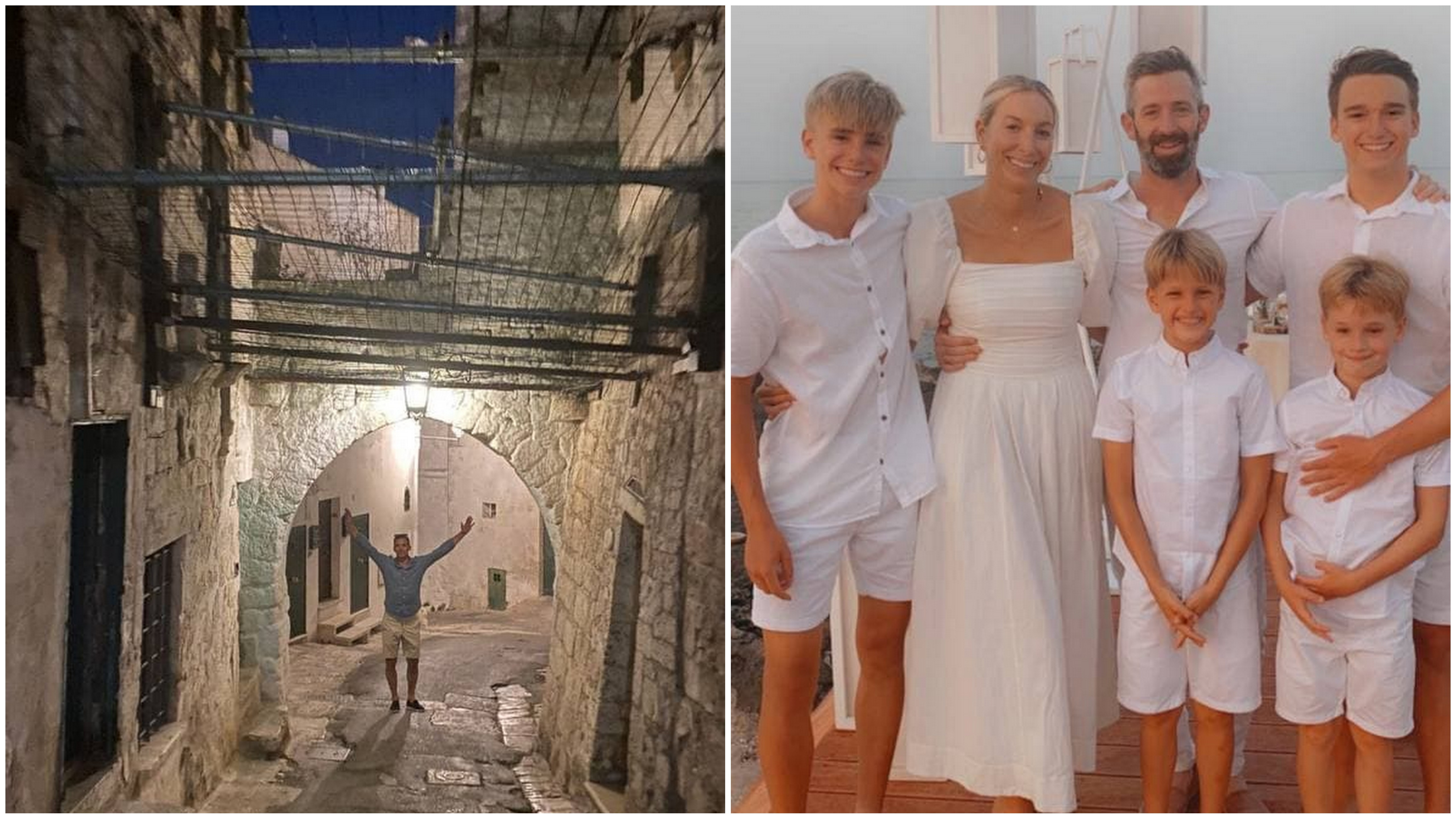 В Остуни с родителями проводят каникулы и четверо сыновей: Джордан (16 лет), Кристиан (14 лет), Александр (8 лет) и Райдер Габриэль (7 лет). Также компанию составила и сестра Кристен со своим мужем.