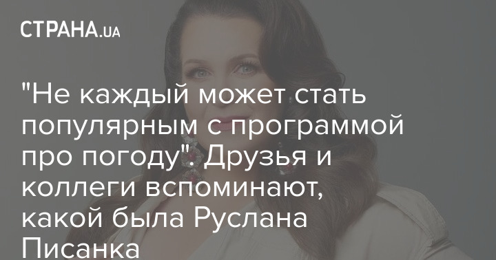 "Руслана Писанка - частица украинской культуры. Это большой, яркий, красивый мазок на картине современной Украины. Невозможно представить украинское телевидение без нее. Многие включали ее прогнозы погоды, даже не слушая звук, а просто любовались ею и, так сказать, развивали воображение", - вспоминает украинский телеведущий Максим Нелипа в разговоре со "Страной".