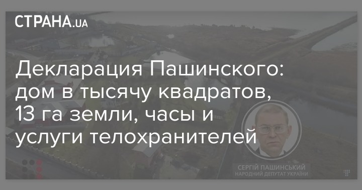 Согласно поданному документу, у Сергея Пашинского нет никакой своей недвижимости. Он пользуется помещением в Киеве площадью 66,1 кв. м (общественная приемная с 1 мая 2010 года). Также он задекларировал квартиру в столице площадью 119,7 кв. м, владельцем которой значится его сын Антон.