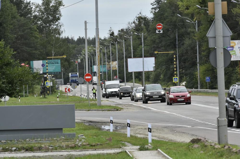 При выезде на "трассу Януковича" (ранее беглый президент ездил этой дорогой в свою резиденцию) в сторону Вышгорода стояла машина новой полиции, а сотрудники на перекрестке регулировали движение. Когда вдалеке появился кортеж силовика, коп перекрыл автомобильный поток и машины Турчинова выполнили поворот в неположенном месте, проигнорировав знак направления движения.