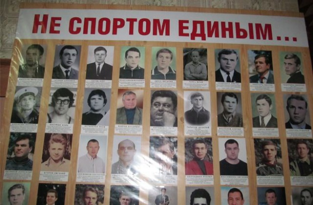 Пару лет назад на стенде "Не спортом единым" фотография Петра Порошенко красовалась в самом центре. Теперь там пустое место. в 2015 году ее сняли.