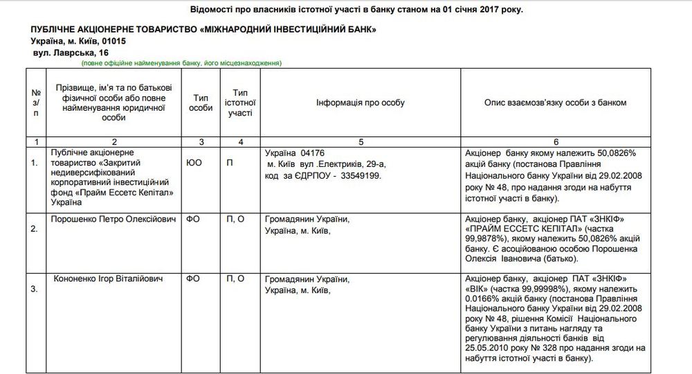 Отметим, что "Международный инвестиционный банк" принадлежит по сути двум людям: Петру Порошенко и его хорошему другу, народному депутату от БПП Игорю Кононенко.
