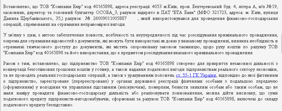 Например, учредитель и директор ООО "Компания Элир" – тот же Александр Успенский, который в момент получения 100 миллионов от Минюста выполнял аналогичные функции в ООО "Золотой мандарин ойл". В одном из решений Днепровского райсуда столицы прямо названа "созданной для прикрытия незаконной деятельности по конвертации безналичных денежных средств в наличные", – то есть является классическим "конвертационным центром":