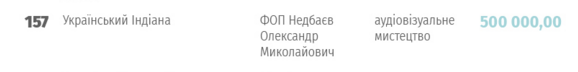 Этот же режиссер, согласно отчету фонда, получил еще полмиллиона на проект "Украинская Индиана":