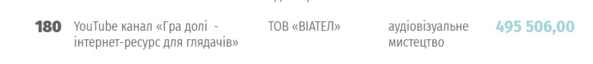 Так, согласно отчету УКФ за 2018 год, почти полмиллиона средств фонда получил YouTube канал "Игра судьбы" ООО "Виател":