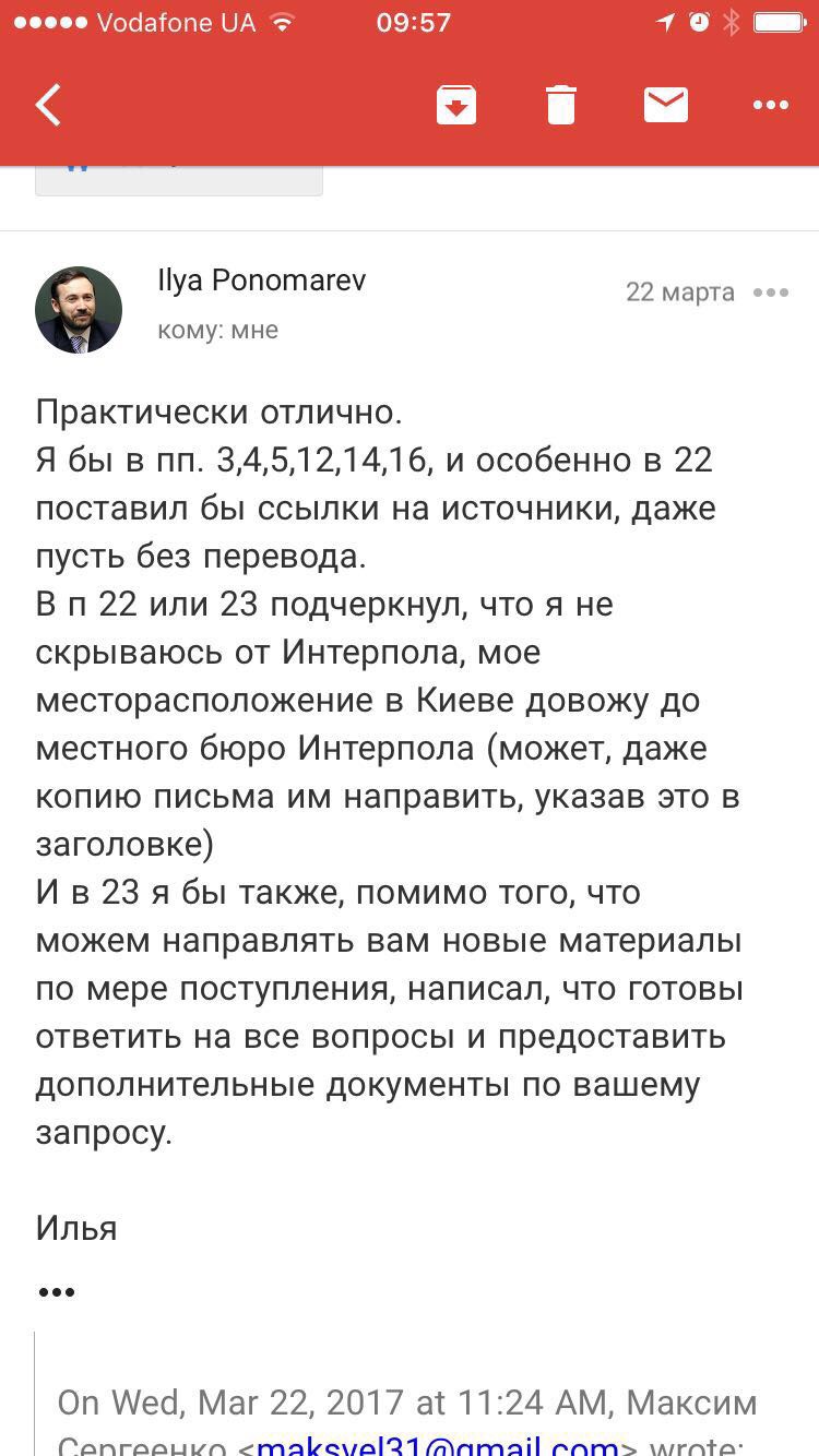 План защиты сохранен на телефоне экс-депутата Госдумы в обед 6 марта 2017 года. И, как следует из переписки между ним и его коллегой – еще одним выехавшим в Украину депутатом Ильей Пономаревым, принят к реализации.