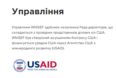 Как сообщается на сайте фонда, WNISEF - первый в Украине и Молдове региональный фонд прямых инвестиций с капиталом 150 млн долларов США. Он был создан конгрессом США, и финансируется правительством США через Агентство США по международному развитию (USAID):