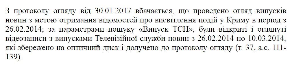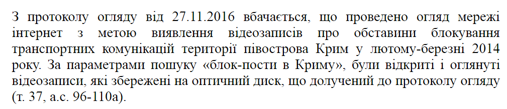 Аналогичным образом прокуроры записали на диски результаты поиска видео по запросу "блок-посты в Крыму", разные интервью и даже выпуски новостей ТСН. Все эти "ролики из ютуба" тоже легли в основу обвинений в адрес Януковича: