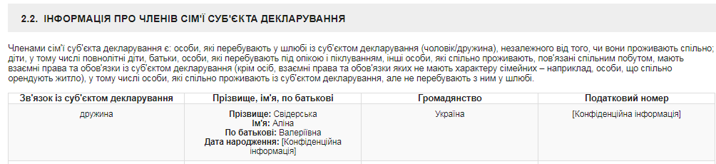 Жену нового министра обороны зовут Алина Свидерская. Об этом министр сам сообщил в своей декларации: