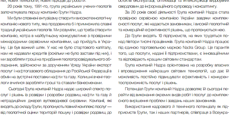Согласно сведениям, размещенным на сайте Nadra group, первая компания группы начала работать еще в 1991 году. Ее создали несколько ученых-геологов, которые зарабатывали деньги, поставляя по поручению правительства Украины в Россию нефтегазовое оборудование и услуги, в обмен на встречные поставки нефти и газа:
