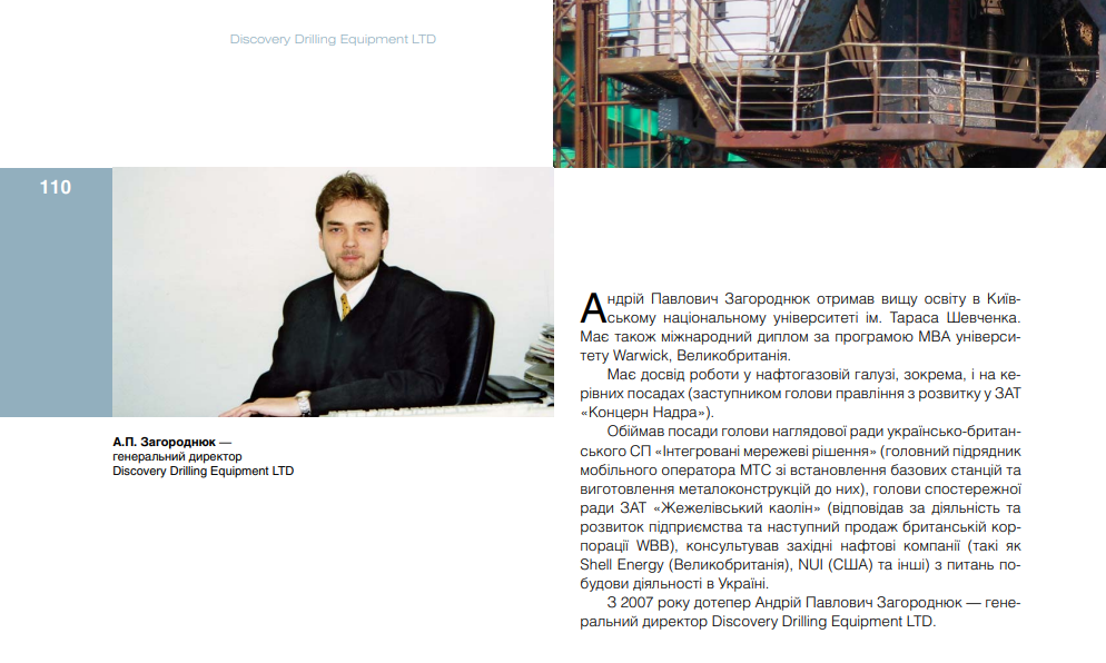 Затем в 2007 году Андрей Загороднюк получил должность генерального директора Discovery Drilling Equipment LTD. Это предприятие по изготовлению буровых станков, производство которых организовано на мощностях завода в городе Стрый Львовской области: