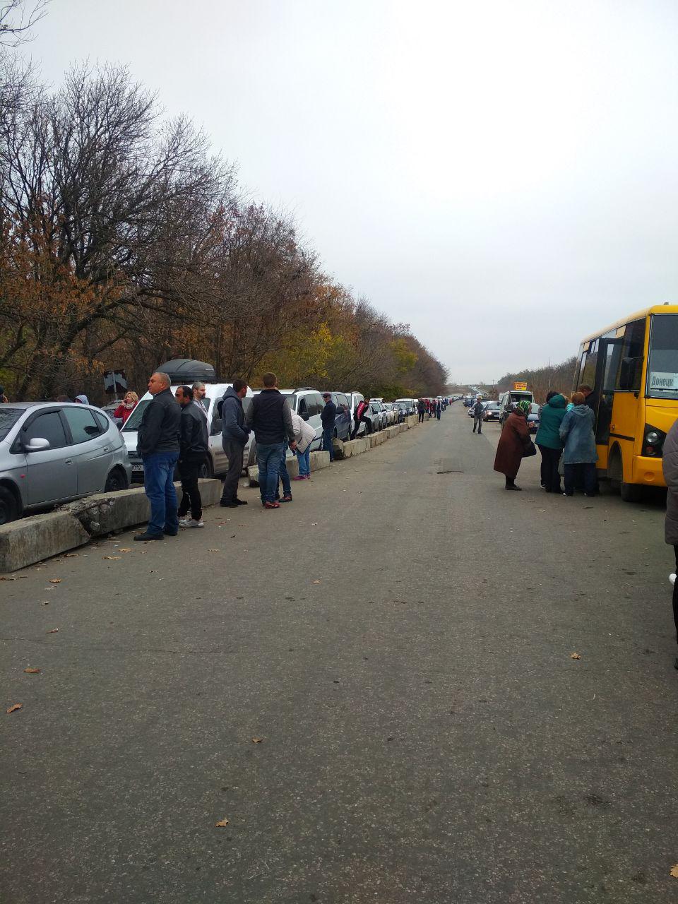 "26 октября в 09:50, на блокпосте возле Горловки команда Миссии видела необычно длинные очереди из примерно 1000 автомобилей, минимум 150 автобусов и 1000-1500 пешеходов, которые направлялись в подконтрольные правительству районы, а также очередь из примерно 70 автомобилей, 5 автобусов и около 100 пешеходов, направлявшихся в неподконтрольные правительству районы", - говорилось в одном из недавних отчетов ОБСЕ.