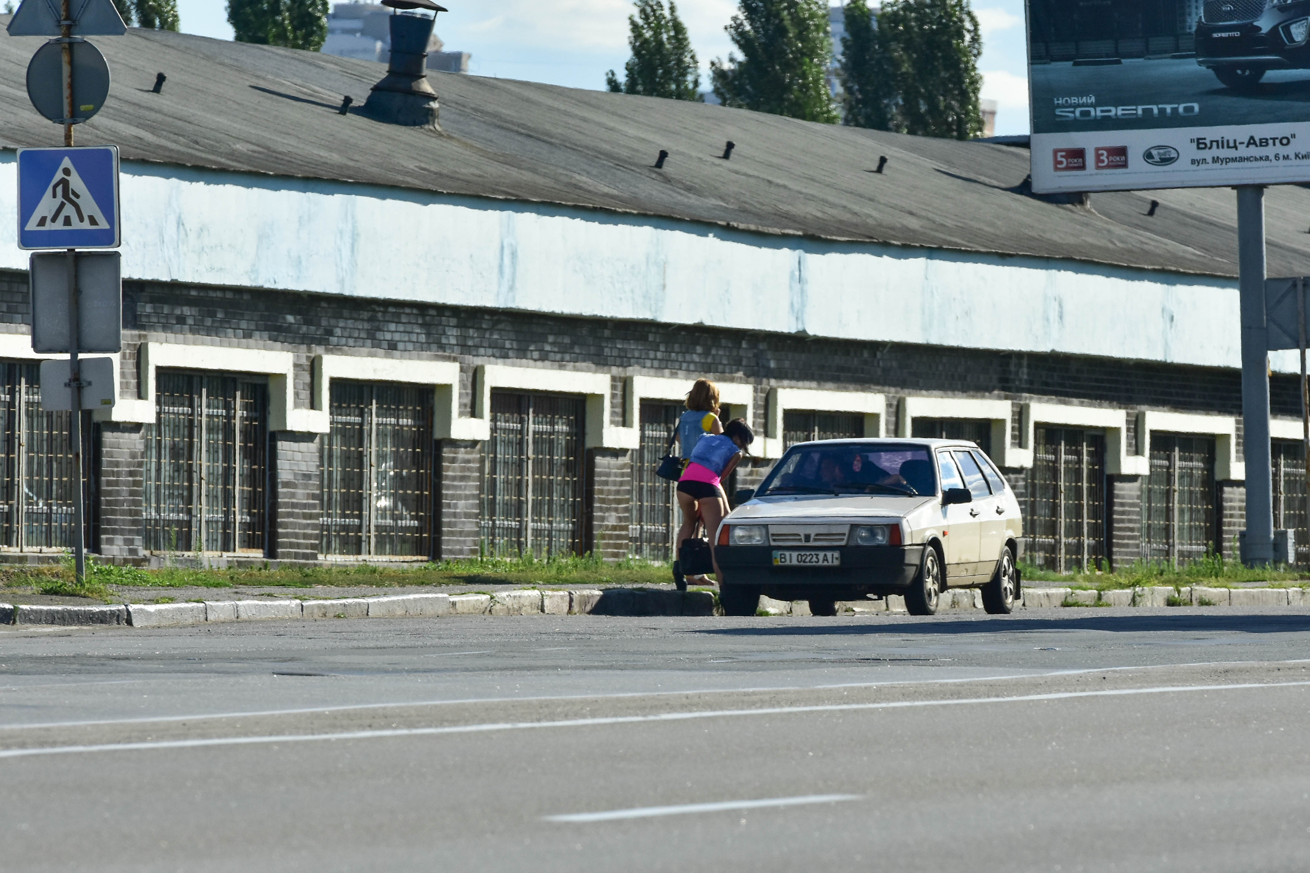 Разговор прерывает очередной клиент. Он, сторговавшись за 900 грн, увозит девушку куда-подальше.