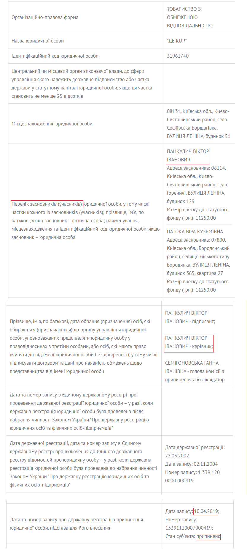 А в декларациях о доходах и имуществе судья Панкулич, похоже, позабыл указать фирму, где он был учредителем и директором. Речь идет об ООО "Де кор", которое было создано в 2002 году. Об этом свидетельствуют данные госреестра юридических лиц:
