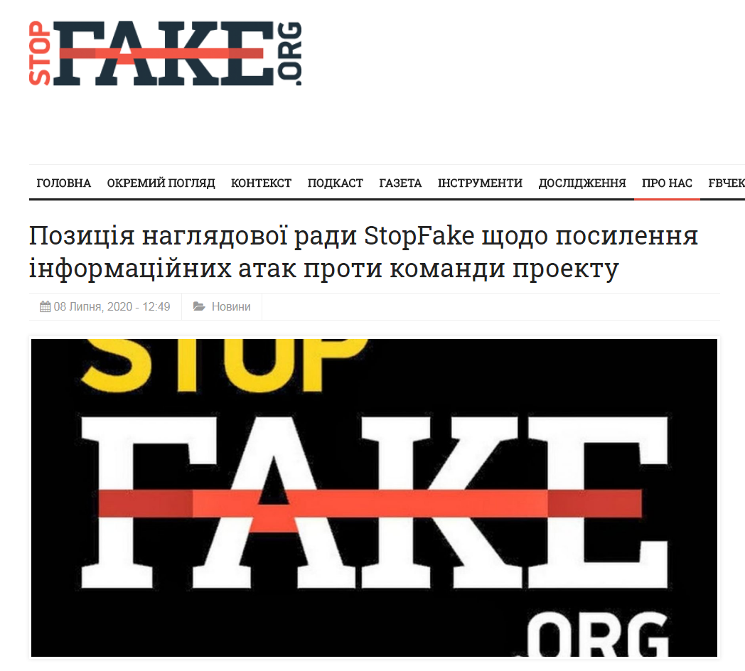 8 июля на сайте StopFake появился ответ на публикацию "Забороны", обозначенный как "позиция наблюдательного совета StopFake". В организации отвергли все обвинения в связях с ультраправыми: