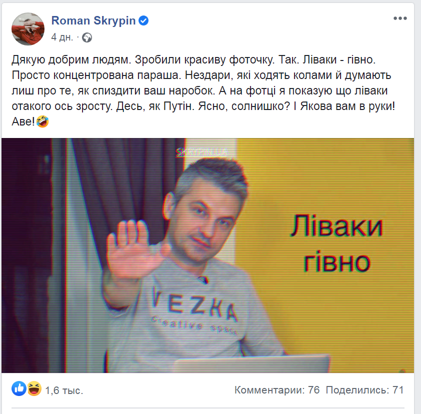Дискуссии превратились в настоящую травлю после того, как в них включился бывший глава телеканала "Громадське телебачення" Роман Скрыпин.