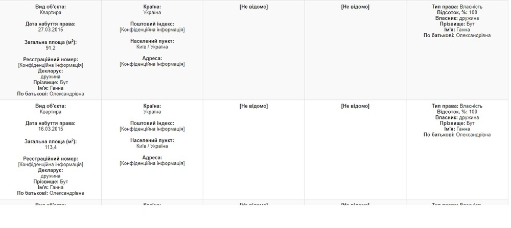 Журналисты программы "Схемы" выяснили, что в прошлом году Анна Бут подарила обе квартиры и два гаража в "Новопечерских Липках" своей матери. Сам же замначальника ГСУ МВД продолжает жить по этому адресу, где его запечатлели представители СМИ.