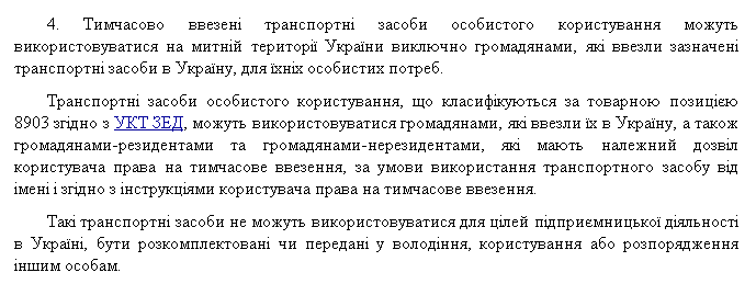 Как говорилось выше, согласно Стамбульской конвенции государство Украина может разрешить своим гражданам использовать такие автомобили для личных нужд, а может не разрешить.