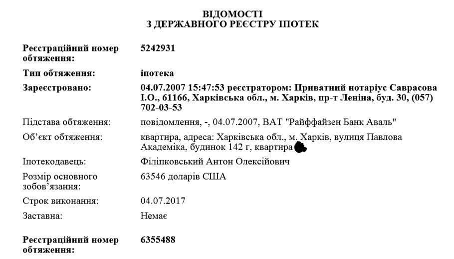 Известно, что десять лет назад Филипковский выступал фигурантом оформления двух крупных кредитных займов. Первый из них был получен Антоном вместе с неким Валерием Хартюновым в июле 2007 года. Речь шла о кредите в размере $63,5 тыс. сроком на 10 лет. В сентябре того же года мужчины оформили еще один займ - 226 тыс.грн.