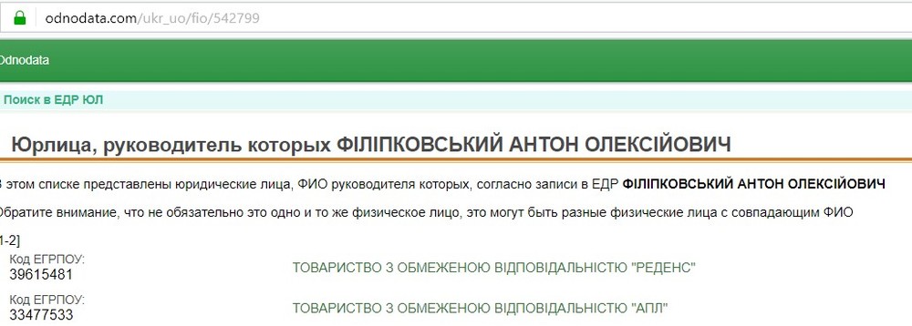 Эти анкетные сведения являются важными, ведь в них "всё правда, но не вся правда". Согласно данным государственных реестров, харьковчанин выступает учредителем двух фирм. Которые имели и продолжают иметь проблемы с законом. Речь идет об ООО "АПЛ", которая находится в стадии ликвидации, и, что наиболее важно, ООО "Реденс".