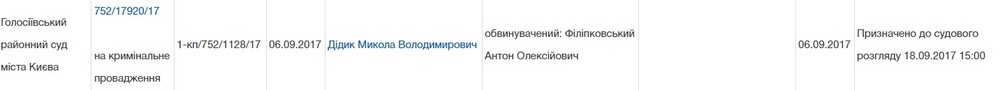 На основании сделки Филипковского со следствием, его эпизод выделен из истории #Гужвагейта в отдельное уголовное производство. В нем Филипковский согласился признать свою вину по ч.3 ст.189 УК Украины. Обвинительный акт в этом деле уже направлен в Голосеевский райсуд, который 18 сентября осуществит рассмотрение производства.