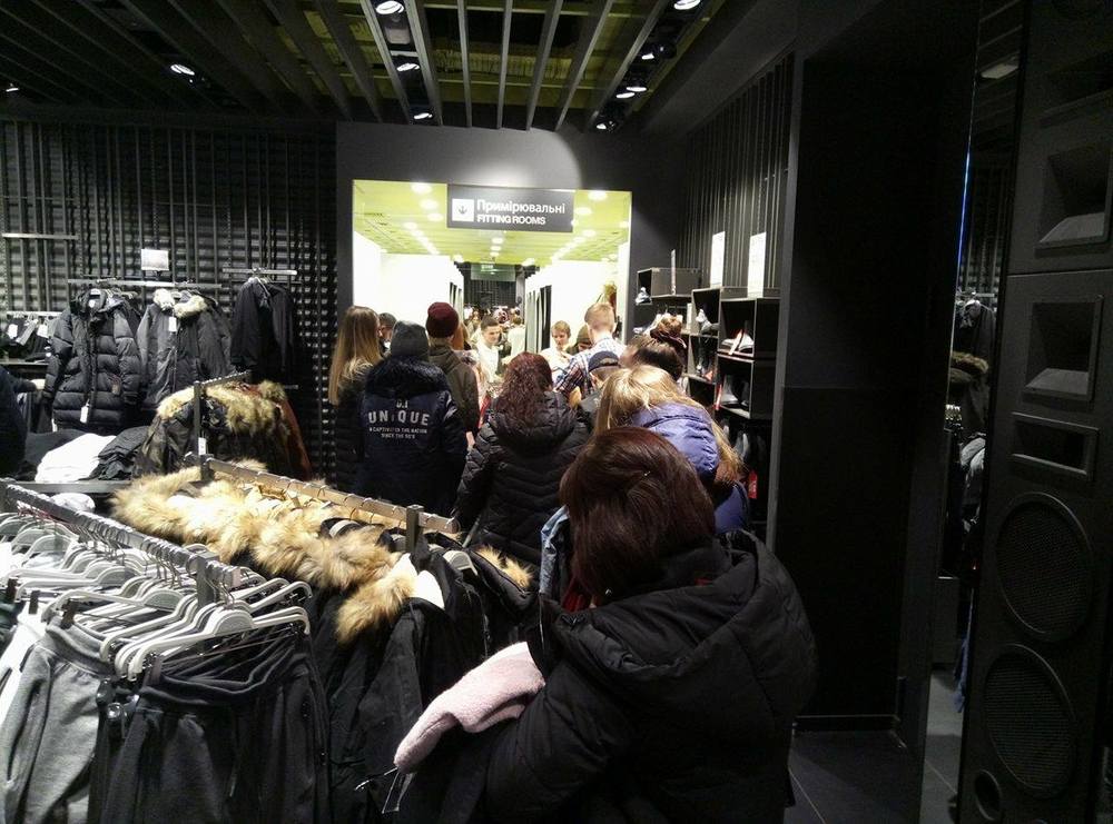 К масс-маркет брендам уже к 11 утра выстраиваются километровые очереди. Люди формируют длинную зигзагообразную "змейку", занимая почти все пространство торгового зала и нередко выходя за пределы магазина.