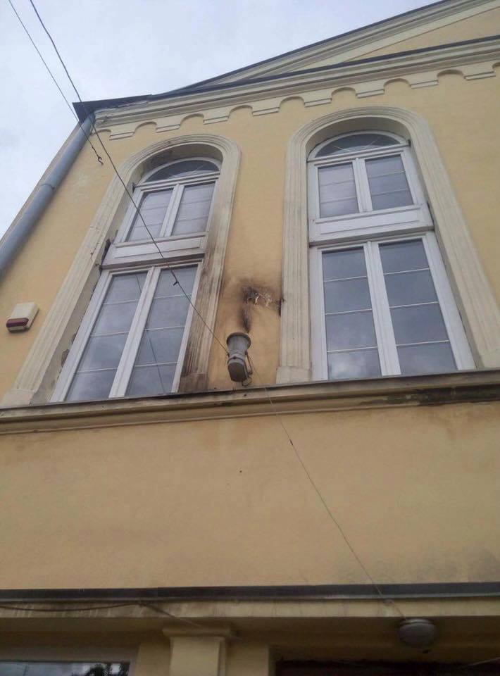 Следы от брошенного в здание львовской синагоги "коктейля Молотова", источник фото: facebook.com/eduard.dolinsky