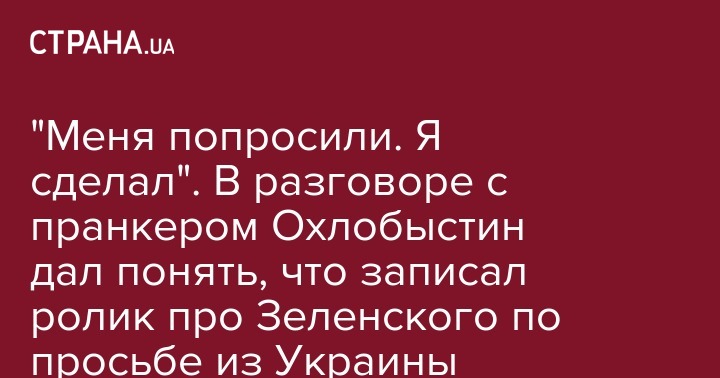 Из разговора пранкера с человеком с голосом, похожим на Охлобыстина, который находится в нашем распоряжение, можно понять, что видеоролик российскому актеру заказали некие представители с украинской стороны. А посредником выступил некто Захар. И сам Охлобыстин с учетом резонанса и негативной реакции на него, хотел бы получить доплаты. Пранкер предлагает Охлобыстину продолжить сотрудничество и снять еще что-то на парламентскую кампанию. Впрочем, вскоре Охлобыстин осознает, что звонок это розыгрыш и кладет трубку.