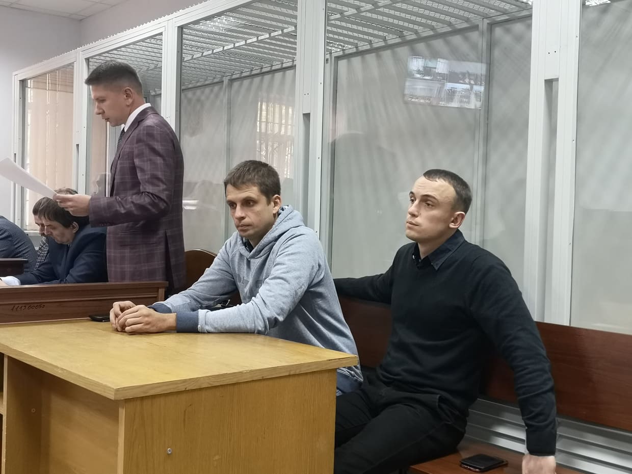 Обвиняемые в убийстве Олеся Бузины Андрей Медведько (слева в сером) и Денис Полищук (справа). Фото: Страна
