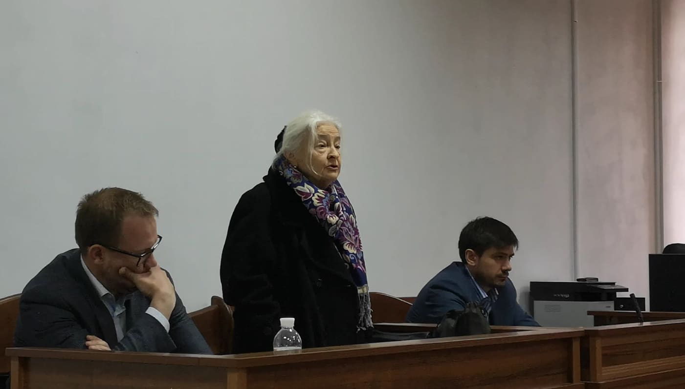 Валентине Павловне скоро исполнится 80 лет. Она ходит на каждое судебное заседание. Трясущейся рукой поправляет шарф, темно-синий, с бахромой и вышитыми золотым и фиолетовым цветами. Белые волосы собраны в пучок черной бархатной резинкой. Она ходит, опираясь на трость, и каждый шаг дается ей с трудом.
