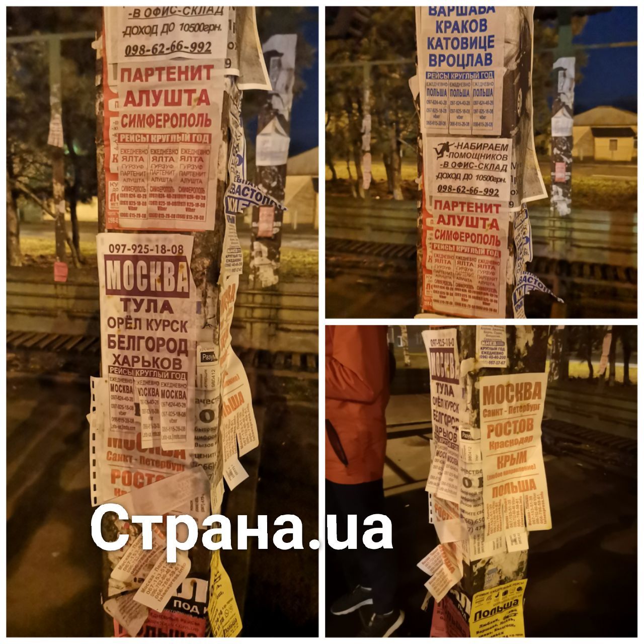 Это не набор туристических маршрутов и не игра в города. Это реклама поездок и заработка за границей. Именно такие объявления расклеены у вокзала в Кривом Роге, родном городе президента Владимира Зеленского.
