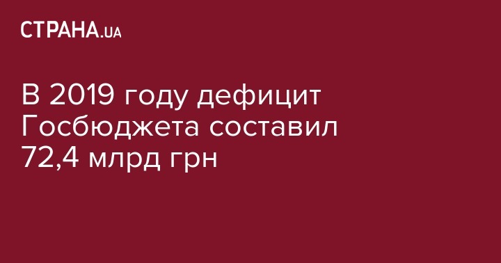 Общий дефицит Государственного бюджета Украины в 2019 году оказался меньше планового и составил 72,4 миллиарда гривен (это около 1,8% ВВП). Об этом сообщается в комментарии к закрытию бюджетного года на сайте Министерства финансов.