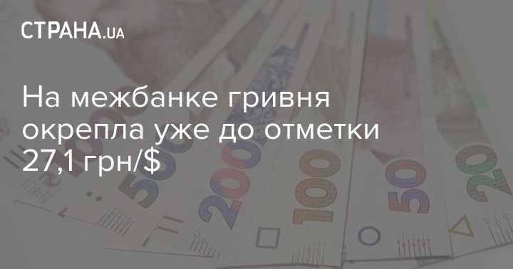 На межбанке гривня окрепла уже до отметки 27,1 грн/$