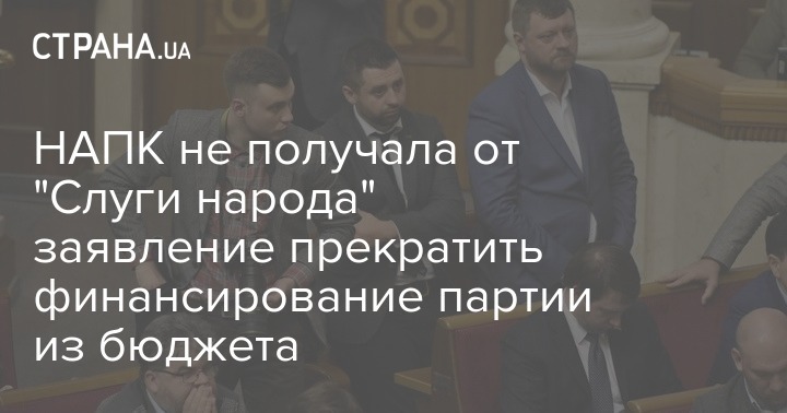 Национальное агентство по вопросам противодействия коррупции (НАПК) заявило, что им не приходило обращения от партии "Слуга народа" с просьбой прекратить госфинансирование партии. Хотя председатель партии "Слуга народа" Александр Корниенко в конце марта говорил, что партия отказалась от финансирования за счет государственного бюджета до конца года.