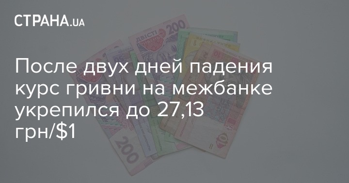 После двух дней падения курс гривни на межбанке укрепился до 27,13 грн/$1