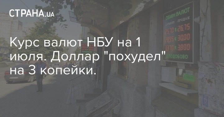 Курс валют НБУ на 1 июля. Доллар "похудел" на 3 копейки.