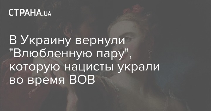 В Украину сумели вернуть картину "Влюбленная пара" Пьера Луи Гудро, украденную немецко-фашистскими захватчиками во время Великой Отечественной войны (1941-1945). Тогда ее похитили из запасников киевского музея Ханенко, а затем она оказалась в частной коллекции в США.