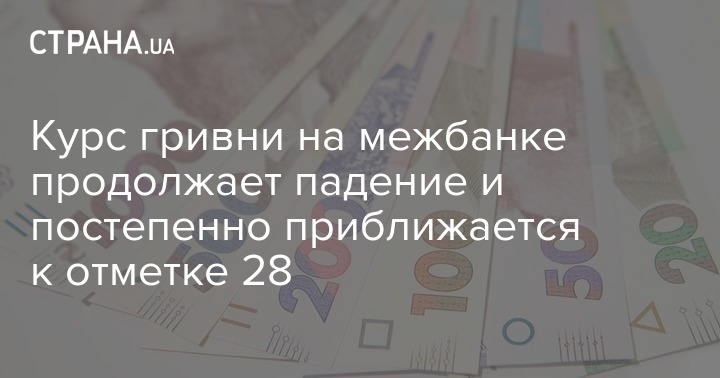 Курс гривни на межбанке продолжает падение и постепенно приближается к отметке 28