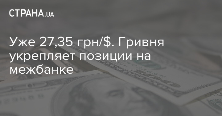 Уже 27,35 грн/$. Гривня укрепляет позиции на межбанке