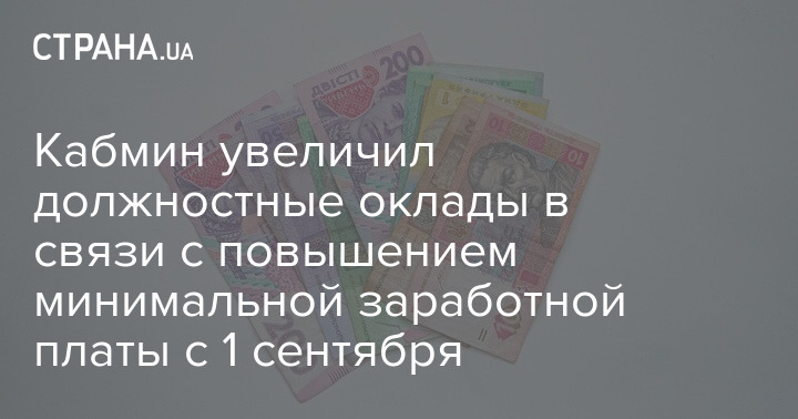 Кабинет министров Украины повысил должностные оклады (тарифные ставки) бюджетникам в связи с повышением минимальной заработной платы с 4723 гривен до 5000 гривен с 1 сентября.
