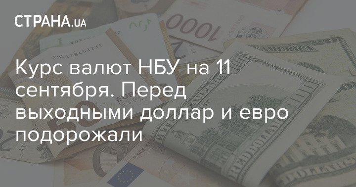Курс валют НБУ на 11 сентября. Перед выходными доллар и евро подорожали