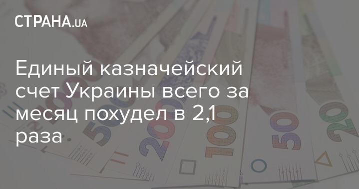 Единый казначейский счет Украины всего за месяц похудел в 2,1 раза