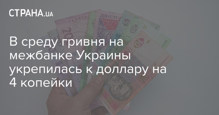 В среду гривня на межбанке Украины укрепилась к доллару на 4 копейки