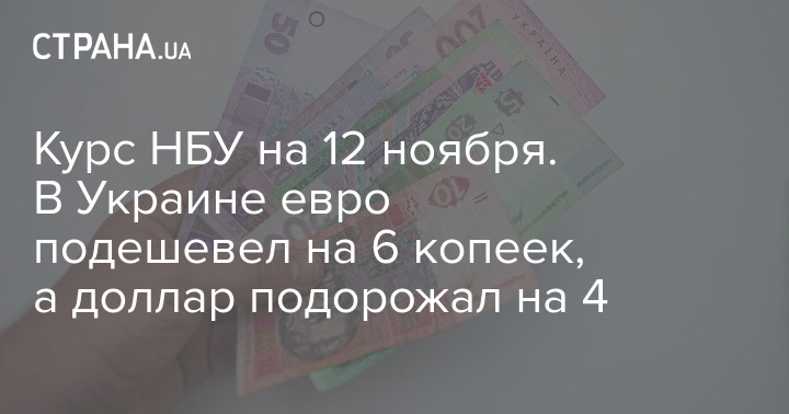 Курс НБУ на 12 ноября. В Украине евро подешевел на 6 копеек, а доллар подорожал на 4