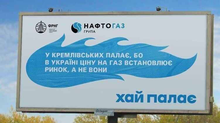 Так, текст одного из билбордов ФРНО и "Нафтогаза" гласит: "У кремлевских полыхает, потому что в Украине цену на газ определяет рынок, а не они. Пусть полыхает".