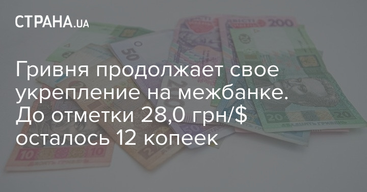 В первый рабочий день недели, 7 декабря, курс гривни на межбанковском валютном рынке укрепился до 28,120 грн/$1 с 28,255 грн/$1 перед выходными. Котировки нацвалюты на закрытии торгов составили 28,11-28,13 грн/$1.