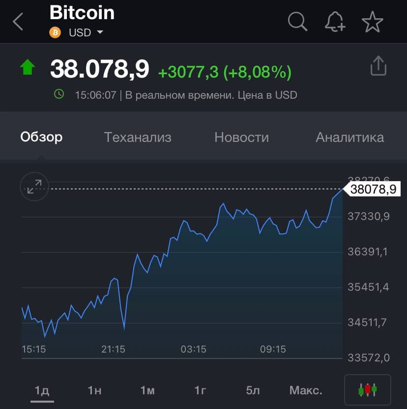 Тем временем, курс биткоина, обновил свой исторический рекорд. По данным портала CoinMarketCap в 15:06 криптовалюта достиг отметки в 38, 078 долларов.