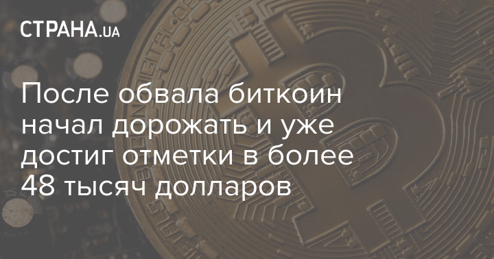После обвала биткоин начал дорожать и уже достиг отметки в более 48 тысяч долларов