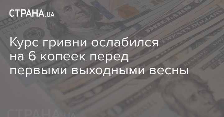 Курс гривни ослабился на 6 копеек перед первыми выходными весны