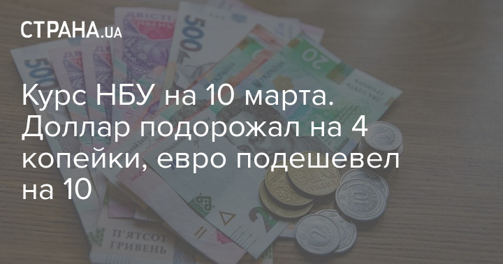 Курс НБУ на 10 марта. Доллар подорожал на 4 копейки, евро подешевел на 10